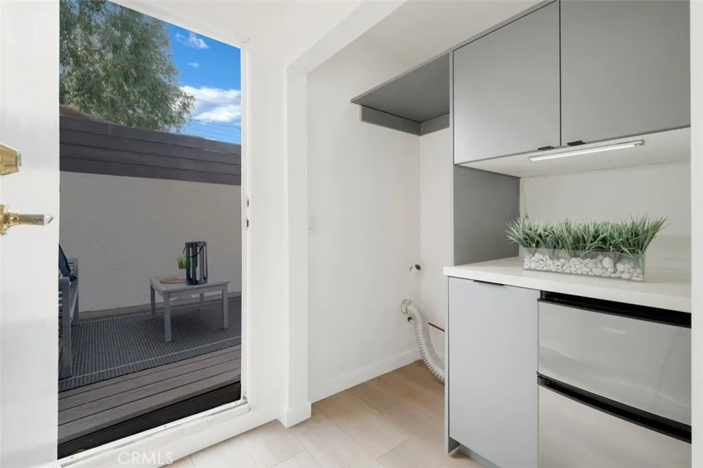Welcome home! This beautifully reimagined townhouse-style condo in the heart of Sherman Oaks could be yours! This exceptional 2-bedroom, 2.5-bath end unit offers the rare luxury of no neighbors above or below, providing the privacy and quiet feel of single-family living. This unit was fully renovated in 2022. The renovations were thoughtful, high-end upgrades including soundproof drywall, soft-close cabinetry, stainless steel appliances, a built-in wine cooler, and designer finishes throughout. The light-filled living room features an elegant decorative fireplace, custom built-in bar, and convenient powder room downstairs. Flowing effortlessly into the dining area and sleek updated kitchen complete with quartz countertops and modern detailing. Upstairs, two spacious primary suites each offer their own en-suite bath and custom-designed closets, creating ideal comfort and privacy. The top level includes a dedicated laundry area with washer and dryer hookups. There is also access to your own private rooftop deck! This is perfect for entertaining or enjoying serene treetop and mountain views. Additional highlights include two side-by-side parking spaces in a secured gated garage, central air and heat, ample storage, and a low HOA covering water, trash, insurance, and common area maintenance. Ideally located just minutes from Trader Joes, Gelsons, the Sherman Oaks Galleria and easy access to the 101 and 405 freeways. This home offers the perfect blend of modern style, privacy, and prime location in one of the Valleys most desirable communities. Schedule your private showing toda