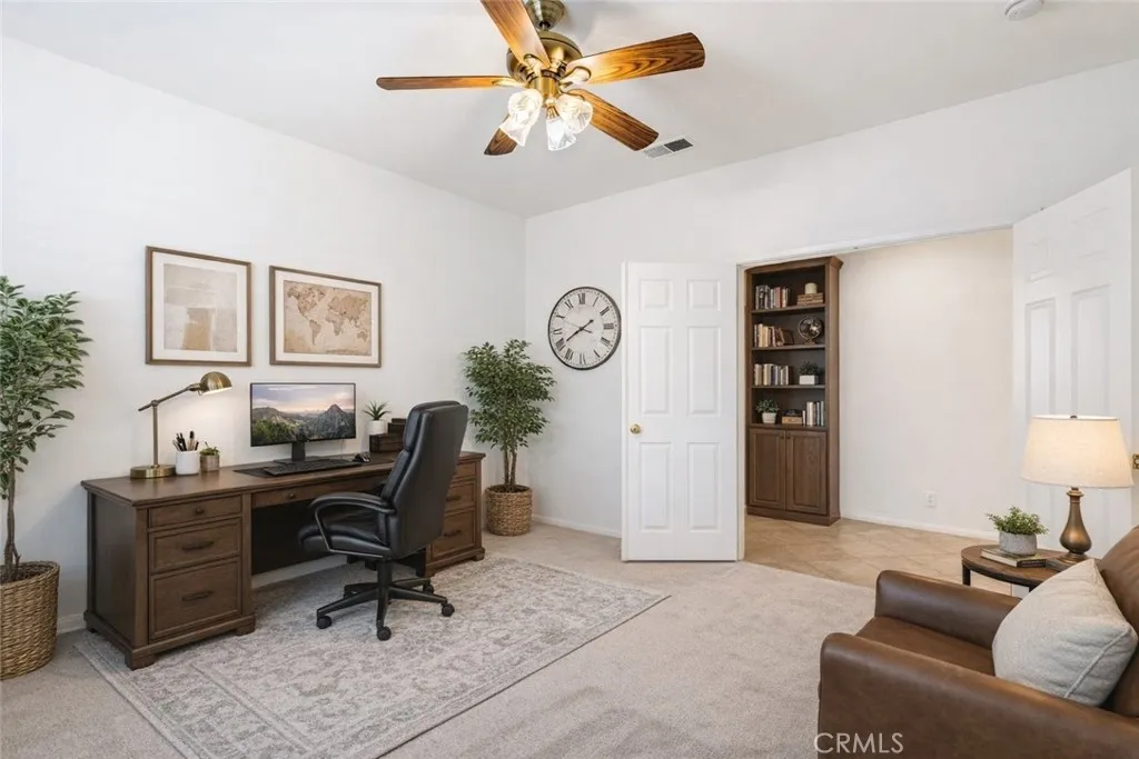 *TEMEKU HILLS* - *MAIN LEVEL PRIMARY SUITE* -*ON THE GOLF COURSE* - *CUL DE SAC*. This home can live like a single level, but has added advantage of a 2nd floor for additional space. 2724 sq. ft with a Main Level OFFICE & Main Level Primary Suite + 2 Bedrooms & expansive LOFT on the 2nd level. This Open Floor Plan is laid out w/ an Office & 1/2 bath in the front of the home, leading to the Formal Living/Dining Room then the spacious Kitchen/Family Room combo. New carpet just installed throughout to help make this home move in ready for its new owners. Neutral tones throughout the house. An abundance of wood cabinetry in the kitchen with center island, white appliances (Refrigerator included) & walk in pantry. Cozy fireplace in the family rm w/ large windows to enjoy the expansive view of the Golf Course just beyond. In the primary suite, 2 spacious walk in closets, dual sinks + separate tub/shower. Upstairs you enter into the oversized loft, perfect for additional family rm. 2 additional bedrooms upstairs w/ full bath. Light and bright throughout. The backyard is perfect for those wanting a golf course view and low maintenance. The covered backyard patio extends the full back of the home. Temeku Hills community amenities are some of the finest in all of Temecula. Enjoy the pool, tennis, pickleball, sports courts, work out facilities & community events/clubs. This Temecula location is the middle of EVERYTHING Temecula has to offer. Low Low taxes with no Mello Roos. Come see this home ASAP!