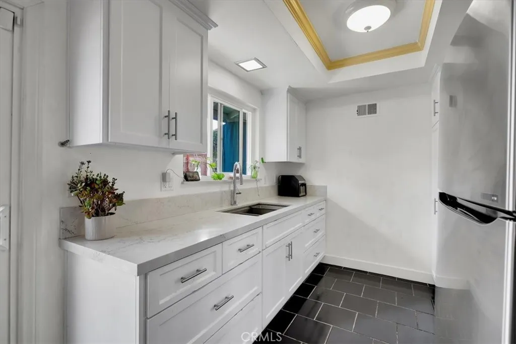 Welcome to this beautifully upgraded single level home featuring 1 bedroom and 1 bathroom, located in the highly desirable and meticulously maintained Treehaven condominium community. Perfectly positioned in a prime end-unit location with no surrounding neighbors, this single level home offers exceptional privacy and an abundance of natural light throughout. Step inside to a thoughtfully updated interior featuring an upgraded kitchen with sleek quartz countertops and stainless steel appliances, blending style and functionality. Upgraded dual pane windows enhance energy efficiency while allowing natural light to fill the space. The remodeled bathroom showcases modern finishes and a clean, refreshed design. The home also features a spacious primary retreat, providing a relaxing and private space with plenty of room to unwind. One of the most special features is the private backyard retreat a peaceful outdoor escape complete with mature grape vines, tangerine and fig trees, and even a ghost pepper plant for those who enjoy a little spice. Its the perfect setting for relaxing evenings, gardening, or entertaining. Conveniently located just steps from the community laundry facility and garage, this single level home offers everyday convenience. Residents of Treehaven enjoy a safe, welcoming environment surrounded by lush greenbelts, along with two well-maintained community pools and a clubhouse ideal for gatherings and leisure. Ideally situated close to major freeways, this home provides easy commuting access while being just minutes from great dining, shopping, and entertainmen