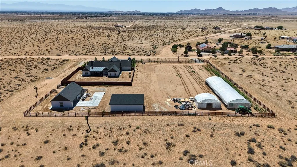AMAZING CUSTOM-BUILT HOME WITH DETACHED ADU, OWNED SOLAR, AND PRIVATE WELL ON NEARLY 2 ARCES! Welcome to this stunning custom-built home, a truly unique high desert oasis constructed in 2022. This expansive property sits on just under 2 acres and offers incredible features including a private well (eliminating water bills) and paid-off solar panels, ensuring energy efficiency and low utility cost. MAIN RESIDENCE HIGHLIGHTS (APPROX. 2901 sq ft.) 4 spacious bedrooms and 3 full bathrooms, including a main level primary suite. A chef's dream kitchen featuring a huge island, high-end Jenn-Air appliances, (including a 6-burner stovetop with grill, double oven, wine fridge, and trash compactor), and elegant quartz countertops. Real wood flooring throughout the main living areas with cozy carpet in bedrooms. Architectural details such as custom accent walls in all bedrooms and wood beams in the formal dining room. A cozy living room fireplace. A spacious 4 car attached garage, providing ample room for vehicles and toys. DETACHED ADU(approx. 800sq ft) Perfect for in laws, guests, or potential rental income. features 2 bedrooms, 1 bathroom, and its own attached 1 car garage with separate driveway entrance. EXTERIOR & ADDITIONAL FEATURES, nearly 2 acres of fully fenced, usable land with an automatic gate for security. Two large greenhouses (100ft x 30ft and 30ft x 20ft). An additional 40ft x 20ft structure, currently used as a barn/horse house, that can be converted for various uses. Mountain views and a rural setting provide a peaceful, private lifestyle. This custom home offers a un