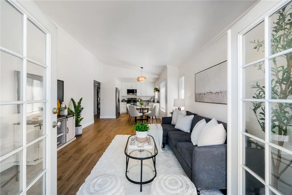 Modern comfort meets everyday convenience in the gated Stonegate community of West Garden Grove. This beautifully remodeled single-level condo offers a bright, open layout with vaulted ceilings, French doors, and a seamless flow designed for easy living and entertaining. The updated kitchen features stainless steel appliances, stylish countertops, and abundant cabinetry, while upgraded finishes throughout create a clean, move-in-ready feel. Thoughtfully improved with a newer HVAC system, newer water heater, new electrical panel, and EV charging in the garage, this home blends style with smart functionality. Two oversized bedrooms include a spacious primary suite with a private balcony, creating the perfect place to unwind. Uniquely positioned with only one shared wall and no one below, this unit offers an added sense of privacy rarely found in condo living. With indoor laundry, a garage plus carport, and a location near top-rated schools, shopping, dining, and the beach, this home delivers both lifestyle and peace of mind. FHA & VA approved
