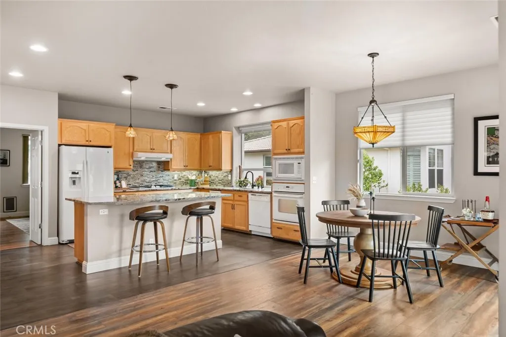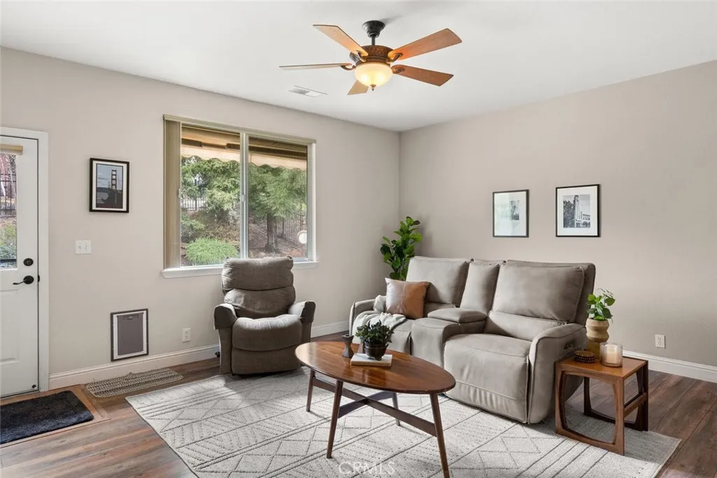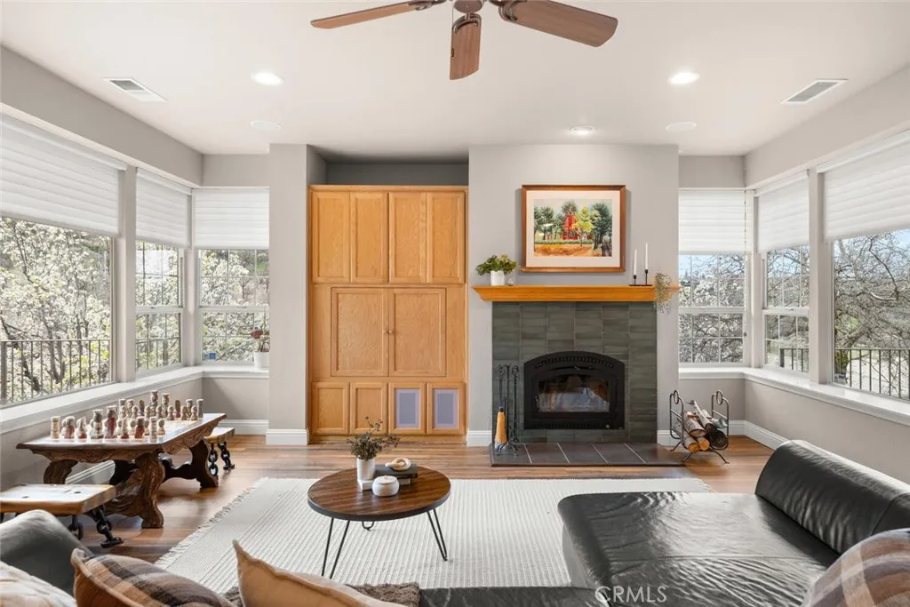 Located in Canyon Oaks, Chicos premier gated golf course community, this beautifully maintained 3-bedroom, 2-bath home offers 2,285 square feet of thoughtfully designed living space and exceptional amenities. With OWNED SOLAR, an upgraded kitchen, a 2.5-car garage, and a custom putting green, this home truly checks all the boxes. Relax on one of the inviting outdoor patios and enjoy the peaceful, park-like setting with hillside views and low-maintenance landscaping. Whether entertaining or unwinding, the backyard is designed for both beauty and ease. Inside, the bright and inviting living room is filled with natural light from expansive windows with modern shades. New flooring throughout, recessed lighting, and a fireplace with tile surround and wood mantel add warmth and elegance, while built-in cabinetry provides functional storage. The open layout offers generous space for both everyday living and entertaining, all framed by peaceful outdoor views. The open kitchen features granite countertops, a colorful mosaic tile backsplash, large island, gas cooktop, oversized single-basin sink, pull-out drawers, and abundant cabinetry. Just beyond the kitchen is a versatile, more private room ideal as a family room, office, or den, complete with its own backyard access. The spacious primary suite offers a private exit to the backyard and hot tub, along with a walk-in closet. The en-suite bath includes dual vanities, a soaking tub overlooking the backyard, and a large step-in shower. Two additional bedrooms share a guest bathroom with a shower/tub combination. Additional highlights