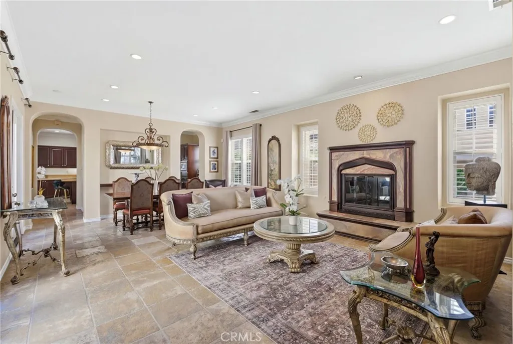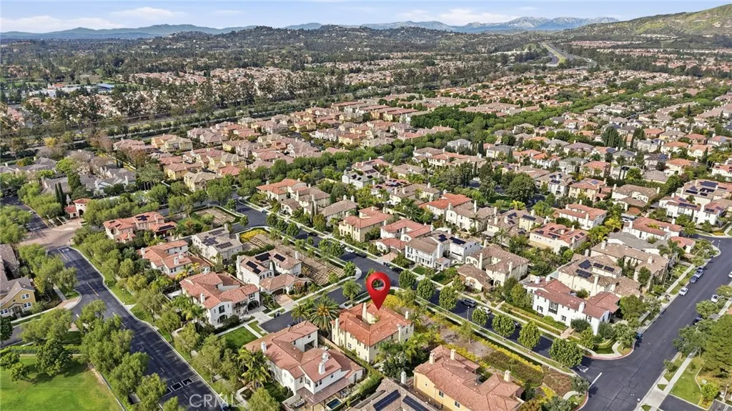 - Welcome to 6 Los Olivos, Irvine a beautiful 4-bedroom, 5-bathroom home situated on a desirable corner lot in a quiet cul-de-sac. This home offers both privacy and curb appeal in one of Irvines most sought-after gated communities and award-winning school district. - Offering both space and comfort, this home features a thoughtfully designed floor plan filled with abundant natural light. Fresh interior paint, crown molding, and baseboards add a clean, refined finish throughout the home. The main level includes a downstairs bedroom and full bathroom, a formal living room, a separate family room, a dining room, built-in storage in the garage, 3 fireplaces, and a versatile bar or office space. - Upstairs, a spacious loft offers flexible living space and can easily be converted into a fifth bedroom. Each of the four bedrooms are generously sized and features its own en-suite bathroom, providing both privacy and comfort. The primary suite has 2 walk-in closets and a spacious bathroom layout. - The wrap-around doors create seamless indoor-outdoor flow, embracing the best of Southern California living. The kitchen is equipped with stainless steel appliances and offers both style and practicality, with a very open living area. - Step outside to a private courtyard seating area with a cozy fireplace, perfect for quiet evenings or intimate gatherings. The backyard is a peaceful retreat featuring a built-in barbecue, Jacuzzi, and landscaping. - Lush palm trees enhance the resort-style setting, while a striking king palm in the front yard creates a strong first impression. Residents e
