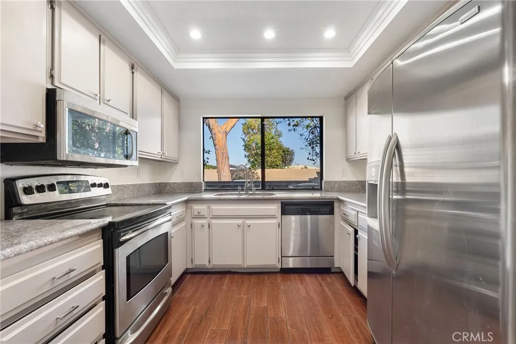 Experience resort-style living in this stunning lake-view townhome featuring soaring high ceilings and an abundance of natural light throughout. This beautifully designed residence offers two spacious bedrooms, two and a half bathrooms, plus a versatile loft that can easily function as a third bedroom, home office, or flex space. The open-concept layout is enhanced by dramatic vaulted ceilings and large windows that frame serene water views. The upgraded kitchen showcases granite countertops and ample cabinetry, perfect for everyday living and entertaining. Enjoy the convenience of a direct-access two-car garage and thoughtful design details throughout. The well-maintained community offers outstanding amenities for residents and guests, all while being ideally located near shopping centers, parks, dining, and major freeways. An exceptional opportunity for first-time buyers or anyone seeking comfort, style, and location in one beautiful package.