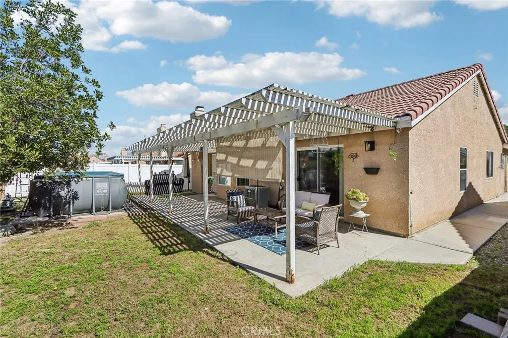 Welcome to this spacious and well-designed home featuring vaulted ceilings, an open floorplan, and the added benefit of a solar lease for low utility billsall with no HOA, low taxes and low utilities. A charming front paver patio creates a warm and inviting entry. Inside, formal living and dining areas greet you just off the foyer, offering the perfect setting for gatherings. The layout flows seamlessly into the open family room, kitchen, and breakfast nook, creating an ideal space for everyday living. The family room is highlighted by a tile-framed fireplace, adding comfort and character. The kitchen offers ample cabinetry, a center island with bar seating, and excellent functionality for entertaining or meal prep. Down the hallway, youll find three bedrooms, two bathrooms, and a spacious laundry room with direct access to the attached 2-car garage. Retreat to the oversized primary suite, featuring a sliding glass door with patio access and an en-suite bathroom complete with a soaking tub, dual-sink vanity, and separate shower. Go outside through the french door in the family room to a generously sized covered patio surrounded by mature trees, offering shade and privacy. An above-ground pool is included and can be removed at the buyers request. Ideally located near Mary Henley Park, shopping centers, dining options, and local schools, this home combines comfort, efficiency, and convenience in a desirable setting.