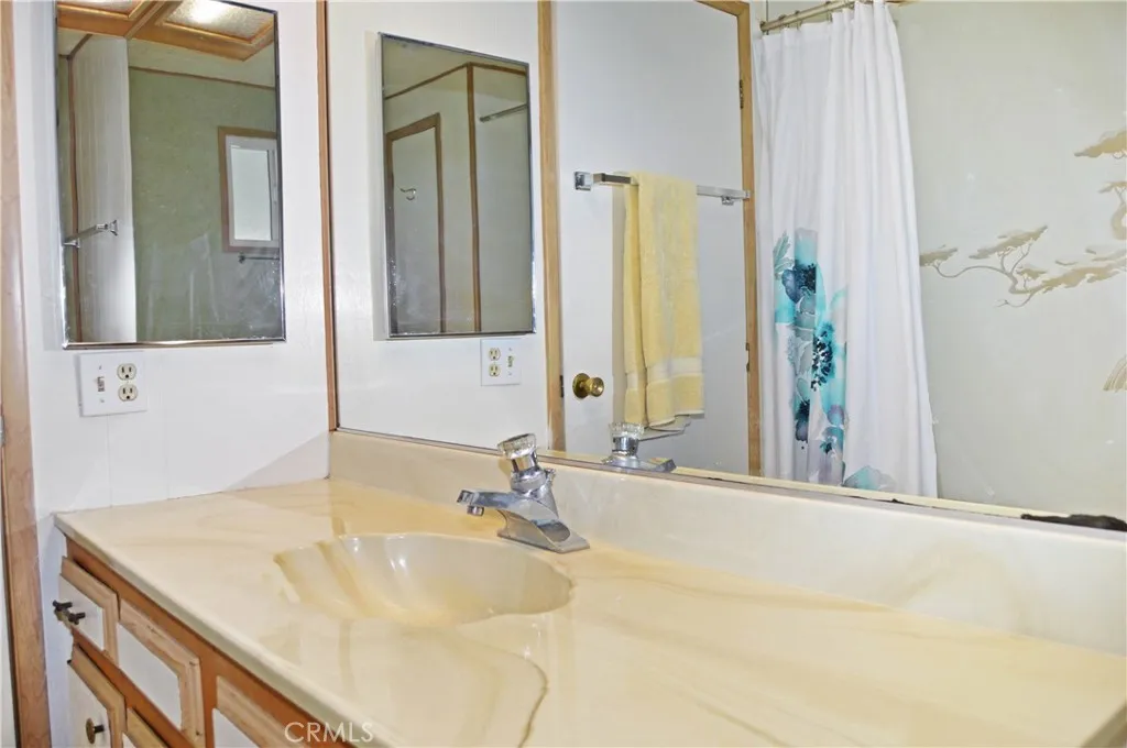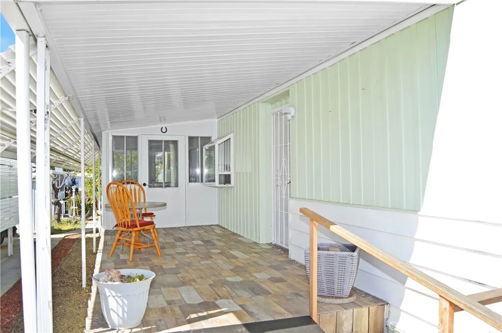Welcome Home to 1255 Amethyst Ave., Space 24 in Carriage Isle Mobile Home Park in Mentone! This 55+ park is off of Hwy 38 between Redlands and Yucaipa on the way to Big Bear with views of the mountains and trees but with all of the convenience of the city nearby. The owner says, My home offers the best views in the park of the snow-covered mountains in the winter and the fun at the pool all summer! Imagine sipping your favorite beverage while enjoying those mountain views from your choice of the living room, dining room, or the covered front porch. What a great way to start or end your day! This spacious 1,568 sq ft home offers abundant living space with an expansive living room/dining room with a built-in hutch at the entry, a breakfast nook and bonus room off of the kitchen, plus 2 bedrooms, 2 baths, indoor laundry (washer/dryer included), and a double-door storage shed under the carport awning. This light and bright home has been updated with dual-paned windows, an entry door with built-in blinds, security screens to let the cool breezes in, custom tile flooring throughout most of it (living/dining room, both bedrooms, hall, and bonus room), and some newer appliances (refrigerator, washer, water heater). The kitchen features a newer refrigerator (2024), wall oven with broiler, gas cooktop, dual stainless steel sinks, a garden window perfect for herbs, a small breakfast bar, a pantry with lazy Susan racks and happy blue accents with whimsical windmills all open to a breakfast nook area with a ceiling fan. The main bedroom suite is at the back of the home and boasts anothe