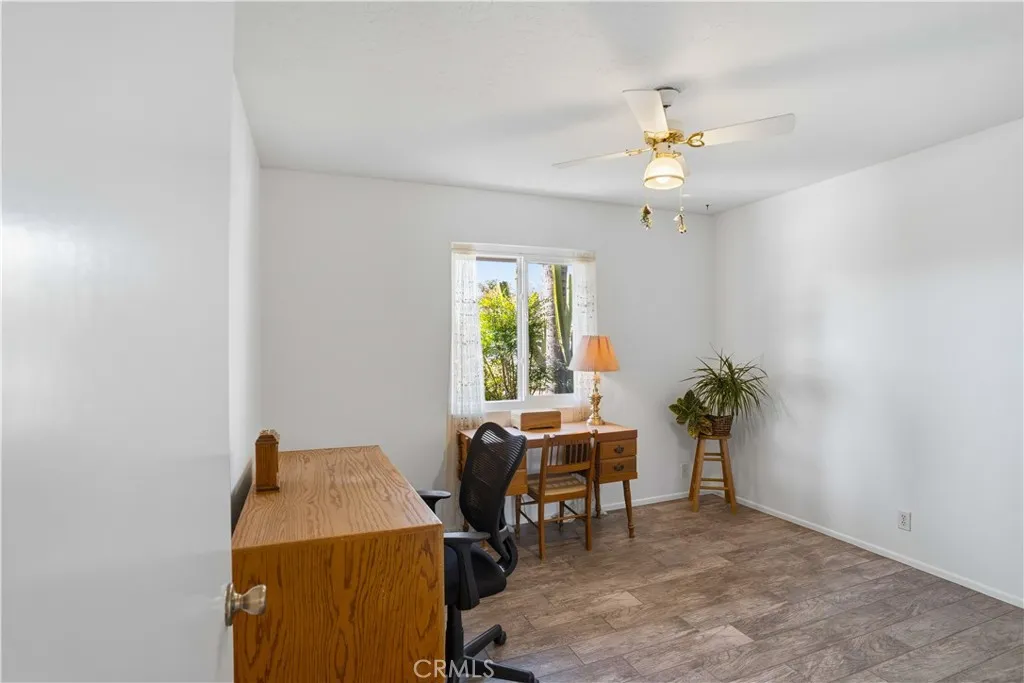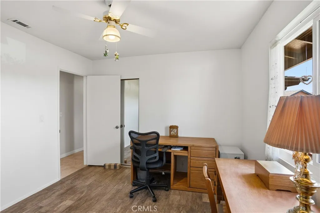 This Menifee single-story home is sure to please! If youve been searching for a property with no HOA, low taxes, RV parking, a huge lot, paid solar, and move-in ready condition, this may be the one. There are so many perks herewhere do I start? As you drive up the quiet cul-de-sac, youll immediately notice the low-maintenance front yard, the extra-long driveway with room for four cars, and the easy-access double vinyl gate leading to the massive RV parking area. And those solar panels on the roof? All 28 of them are fully paid for and is enough for all your energy needs. Also has an updated electrical panel Step inside and youll find the home just as welcoming as the exterior. Neutral porcelain tile runs through the entry, halls, kitchen, and dining area, complemented by upgraded baseboards. The remodeled kitchen features beautiful quartzite countertops, soft-close Yorktowne cabinetry, a newer Kohler sink, and GE appliances. The kitchen opens to a spacious dining area with a cozy fireplace and sliding glass door leading to the backyard. The living room offers plenty of space to relax and enjoy sunset views from the front window. Down the hall are two guest bedrooms, both with ceiling fans, with one featuring wood-look tile flooring. The guest bathroom has been updated with newer paint and a marble bath/shower surround. The primary suite is generously sized and includes a ceiling fan, large vanity area with sit-down space, and a beautifully remodeled marble shower. The garage is extra deep and features a built-in workbench and workstation, along with a laundry area and conve