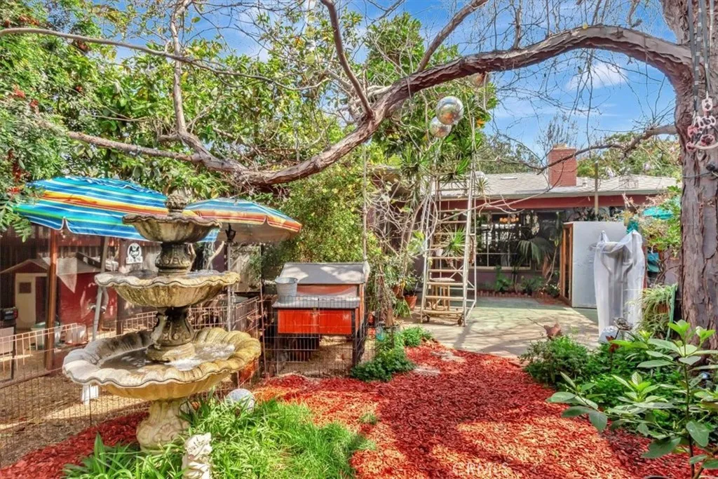 Welcome home to your own private oasis of tranquility in the historic neighborhood of Park Santiago! SINGLE STORY! Situated on a huge 8360 SF lot, this home has 3 bedrooms and 2 baths in 1615 SF of living space. Artistic and original, experience the vintage vibes as soon as you enter the property! Curated with bubbling fountains, artwork, mature trees that provide shade, fruit and flowers, theres so much to enjoy in the abundant outdoor patio spaces and deck, offering peaceful and private spots to read, relax, entertain or just watch nature in your own slice of paradise. Theres plenty of parking and ample space to entertain in this well-planned landscape. This home welcomes you inside with abundant natural light, gorgeous original hardwood floors, custom plaster wall finishes, and many vintage details, along with views of the fully landscaped garden from every room. The living and dining room offer an elegant space to entertain and include a wood burning fireplace and built in cabinetry. A flexible space located adjacent to the living room offers many options for use including a TV/Den, Office, Study or Craft Area. The kitchen and adjacent breakfast nook retain their original cabinetry and tile, adding a charming and cozy spot to cook and enjoy meals. The conveniently located rear mud room leads to the back yard and is outfitted with an extra deep set-tub style sink, washer and dryer space and storage cabinets. Two secondary bedrooms share a full bath, and offer plentiful storage in their original built-in closets. The primary suite is a true sanctuary with an attached bath