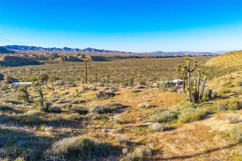 One fantastic hidden gem on 5 acres perched on a hillside with incredible panoramic desert and mountain views in every direction. This scenic parcel offers privacy, natural desert vegetation, and a peaceful setting surrounded by the beauty of the High Desert. A concrete pad remains from the approximately 500 square foot cabin that once stood on the property, offering a potential starting point for future possibilities. Power is located next to the property and Hi-Desert Water District has indicated water availability (buyer to verify all utilities and building requirements). Properties with views, privacy, and usable acreage like this are becoming harder to find, compare this property to anything currently available in the area and youll see why it stands out as a rare opportunity. Beautiful desert plants, open skies, and breathtaking scenery make this a special place to enjoy the desert lifestyle. Take a drive by and see this hidden gem for yourself today.