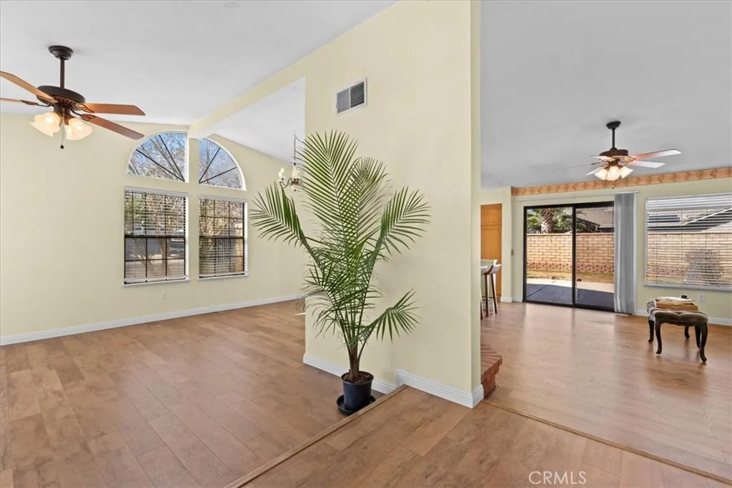 Welcome to this charming single-story home located in the heart of West Palmdale! This 3-bedroom home offers a spacious and open layout featuring vaulted ceilings, abundant natural light, and a cozy brick fireplace that anchors the living area. The bright kitchen features ample cabinetry, skylights, a breakfast bar, and a dining area that flows seamlessly into the main living spaceperfect for everyday living and entertaining. The spacious primary suite includes a large bedroom retreat area with its own fireplace, mirrored closet doors, and sliding glass door access to the backyard. Additional highlights include laminate flooring throughout the main living areas, ceiling fans, an indoor laundry room, and a three-car attached garage. Situated on a corner lot, the backyard offers patio and plenty of space to create your own outdoor oasis. Located near shopping, dining, schools, and commuter routes, this home combines comfort, convenience, and great potential in a desirable neighborhood.