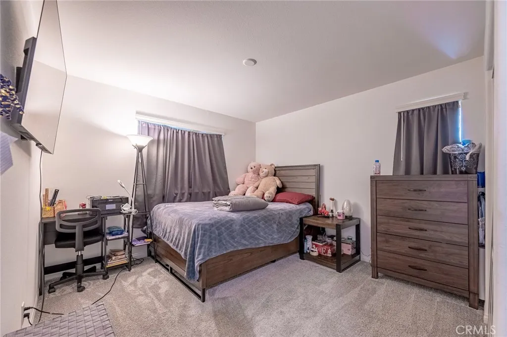 This beautiful corner-lot home sits in a gated community and includes a great layout and paid-off solar panels. Inside the front door, you'll find an open main level with LVP flooring and lots of natural light. The classic white kitchen overlooks the dining & living rooms and features quartz countertops, Shaker cabinetry, stainless steel appliances and an island with pendant lights & bar-top seating. Step through the slider in the dining room, and your private gravel backyard is completely maintenance-free! You can grill up dinner, entertain, dine al-fresco or add a playscape. At the top of the stairs, you'll find a loft that could be a home office, play space or homework nook. The primary bedroom has a walk-in closet and boasts a large ensuite with a W/C, a dual-sink vanity, a soaking tub & a separate glass shower. The spacious guest rooms share the cleverly-designed hallway bathroom, complete with a separate shower/toilet room. And the convenient second-level laundry room is located just steps from the bedrooms! Dont forget about all the storage in the attached 2-car garage and the paid-of solar panels -- which help keep utility costs low. The Depot is a lovely gated community with a dog park, playground, picnic areas, a garden and more. You'll be close to all the shopping & dining along historic Rt. 66, and Kaiser Permanente Fontana is less than 15 minutes away. Hop on the 10 or 210 Fwys in no time!