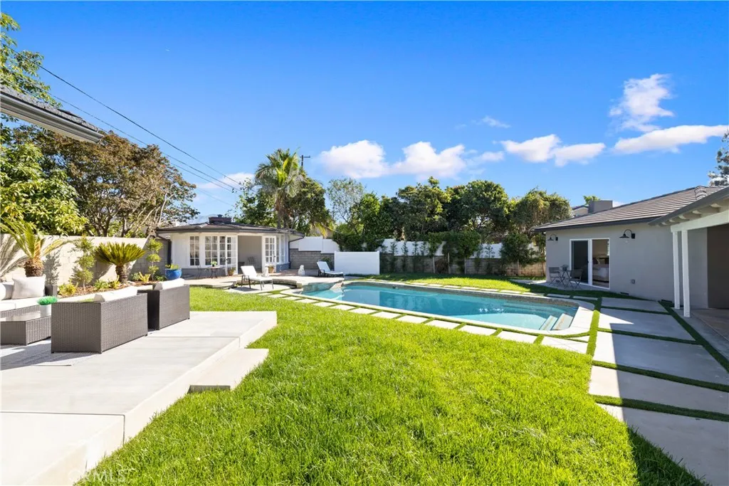 Showcased is a tastefully renovated gem located in Arcadias coveted Colorado Oaks neighborhood, known as the charming College Streets. This magnificent one story south facing home (2,519 Sq Ft) with spacious back house/ADU (694 Sq Ft), Cabana (215 Sq Ft) and pool is an entertainer delight! Situated on a large lot 13,806 Sq. Ft with a wonderful curb appeal, the main home offers 4 bedrooms including two master suites and 3 full baths all updated with designer-selected colors and curated style choices. This spacious and stunning home was completely remodeled in 2025 with utmost materials, including custom millwork, engineered hardwood flooring, custom cabinetry and high-end appliances. It offers a comfortable and open floor plan with the bedrooms wing separated from the living area. Every detail has been thoughtfully crafted to reflect designer sophistication and comfort. The expansive open kitchen is a true centerpiece, showcasing stainless steel appliances, and generous prep spaceperfect for both everyday living and elegant entertaining. Sunlight pours in through brand-new Milgard windows, while the home features new insulation, new plumbing and electrical throughout, a new electrical box, a new water heater, and a new central HVAC system for year-round comfort and efficiency. One of the greatest features of this property is the detached 694 Sq Ft back house/ADU built in 2025 that sits just off the pool/driveway area of the main house. It features 1 bedroom, 2 baths, spacious kitchen with stainless steel appliances and a laundry area. The professionally landscaped backyard w