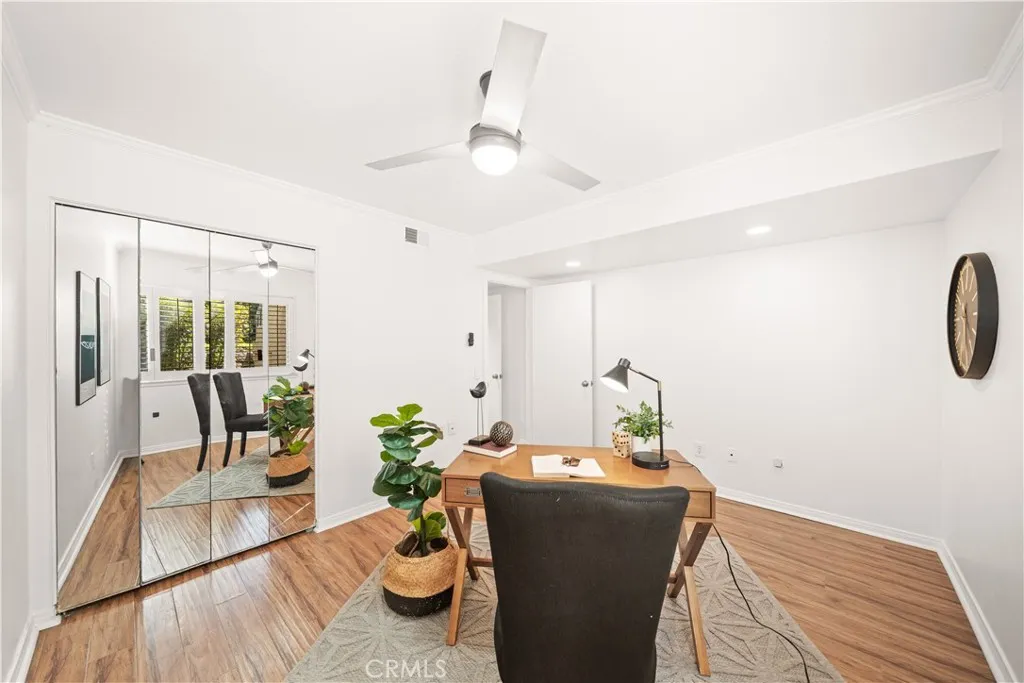 VIEW! VIEW! VIEW! One of the best view in the community! Wonderful opportunity to own this ground-level condo overlooking the beautiful El Niguel Country Club Golf Course, with serene views of the lush fairways, greenbelt, and mature trees. The home features a bright open-concept layout with a welcoming entry that flows seamlessly into the kitchen, dining area, and spacious living room. The living room opens through a large sliding glass door to a generously sized patio, creating an ideal indoor-outdoor living experience. From the patio, enjoy peaceful golf course views framed by mature trees and lush landscaping. The remodeled kitchen showcases beautiful new cabinetry, new countertops, and stainless steel appliances, opening directly to the dining area and living space, making the layout both functional and inviting. The well-designed floor plan offers 3 bedrooms and 2 bathrooms. One bedroom is positioned on one side of the home with a nearby bathroom and enjoys views toward the golf course and greenery. On the opposite side are two additional bedrooms and a second bathroom, with one currently set up as a home office but easily functioning as a third bedroom. Additional features include hard flooring throughout with no carpet, LED recessed lighting and ceiling fan installed in every room, and dual-pane windows and sliding patio doors that bring in abundant natural light. The property includes a detached two-car garage nearby with ample guest parking. HOA dues cover water and trash services. No Mello-Roos tax. The community features beautifully maintained landscaping throug