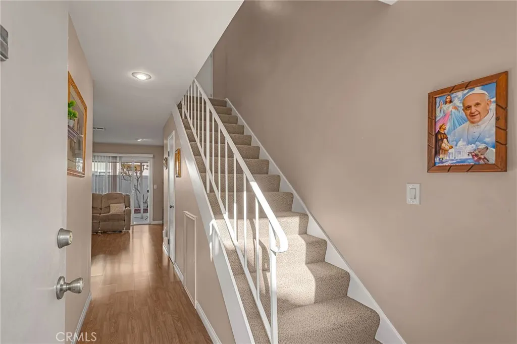 Great Location! Welcome to this charming two story condo in the highly desirable Cerritos area. This well kept home features 2 bedrooms and 1.5 bathrooms with a comfortable and functional layout. The property includes central air and heat, laminate flooring in the downstairs living room, bedrooms and the bathrooms. Tile flooring in the kitchen. The well maintained kitchen and living room opens to a covered private patio, perfect for relaxing or entertaining. The home has been very well cared for and is located in a beautifully maintained community with access to an association pool. Tandem 2 car parking space with a extra storage room, laundry room and HOA dues conveniently cover water, trash, and insurance, adding great value for homeowners. Ideally located near Gonsalves Elementary School, Carmenita Middle School, and the award winning Whitney High School. Enjoy being within walking distance to Cerritos Park East, with convenient access to the Interstate 605, Interstate 5, and California State Route 91. Great potential it wont last.