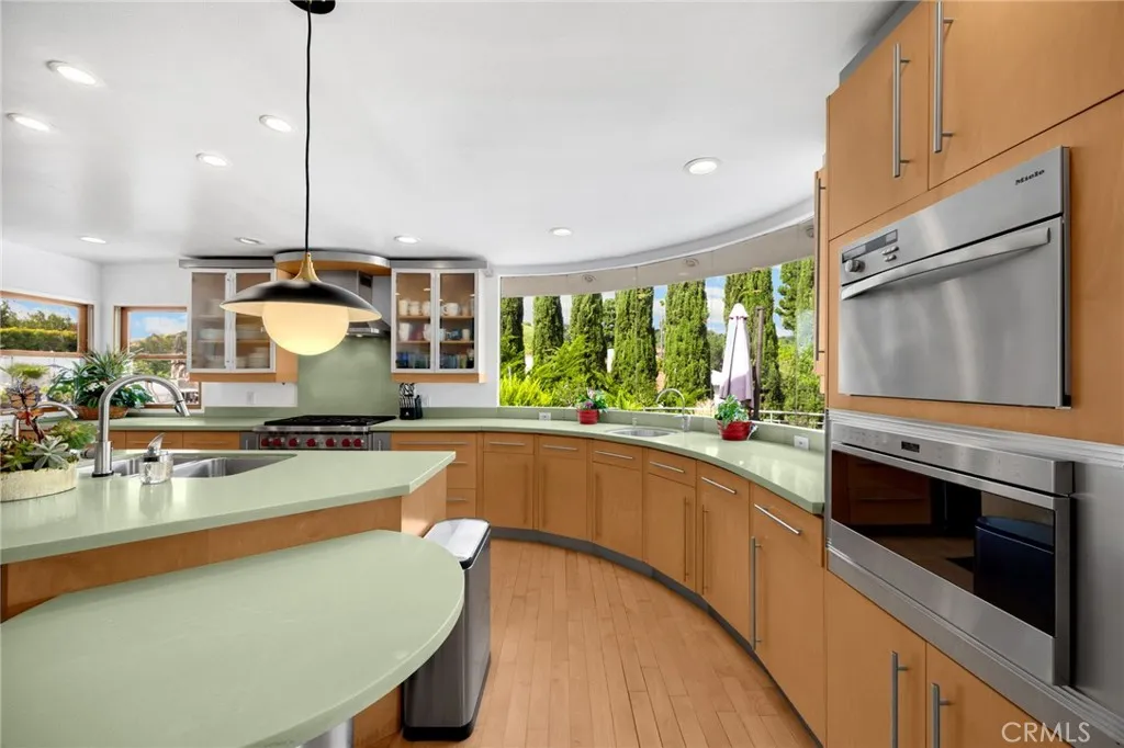 This home is a must see! SPECTACULAR VIEW HOME is in the beautiful Hadley Hills in Whittier! This beautiful home features 4 bedrooms, 4 bathrooms with 3,266 square feet of spacious living space and has beautiful finishes throughout. As you enter, you are welcomed into the beautiful foyer with views of the beautiful formal dining room that includes French doors to the beautiful backyard. Custom open-concept kitchen includes custom cabinetry for storage, stainless steel appliances including Professional grade Wolf Gas Range with 6 burners, built-in subzero refrigerator, double ovens, microwave, and warming drawer. The kitchen also features an island with table seating, desk area, and it is open to the family/theater room which is great for entertaining. This home also includes a large living room area with a cozy fireplace and has French doors to the beautiful backyard. Upstairs features a LARGE PRIMARY SUITE that includes a large bedroom area with BEAUTIFUL VIEWS off your private balcony and has spa-like bathroom that includes large jacuzzi tub, double sink vanity, large glass enclosed shower, and towel warming rack. Down the hall are additional generously sized bedrooms with plenty of closet space and a beautiful hall bathroom. This backyard is built for entertaining! The backyard features a covered patio area with two seating areas, outdoor kitchen/BBQ, beautiful lap pool, above ground spa for relaxing, and a spacious deck area with SPECTACULAR views of the rolling hills. Additional features of this home include solar-owned panels to save on your electricity bills, 2 car g