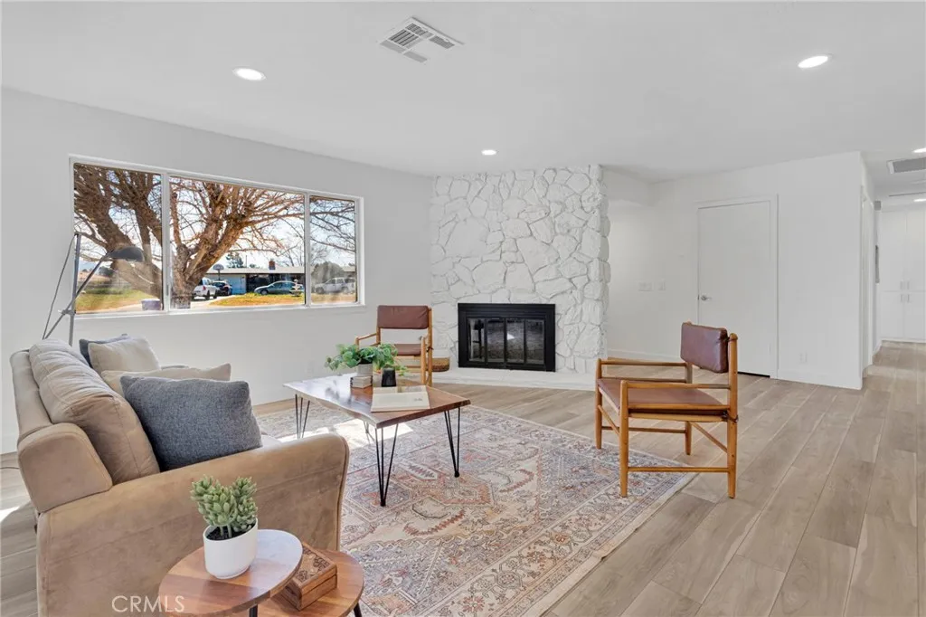 Welcome to this beautifully remodeled Apple Valley home that is truly move-in ready. Designed for comfortable living and effortless entertaining, this home features a welcoming living room with a cozy fireplace and a spacious family room with a second fireplaceperfect for gatherings with family and friends. A large office space offers flexibility for working from home, hobbies, or additional living space. Nearly every detail of this home has been updated, including a completely new kitchen, new flooring, fresh paint, new baseboards, updated doors, and upgraded electrical and plumbingcreating a modern and refreshed interior throughout. The oversized garage provides excellent storage and functionality and even includes its own bathroom, making it ideal for a workshop, projects, or extra convenience. Situated on a spacious corner lot, the backyard features a covered patio that stretches the length of the homeperfect for outdoor dining, entertaining, or simply relaxing and enjoying the desert evenings. This is the kind of home where all the work has already been donejust move in and enjoy.