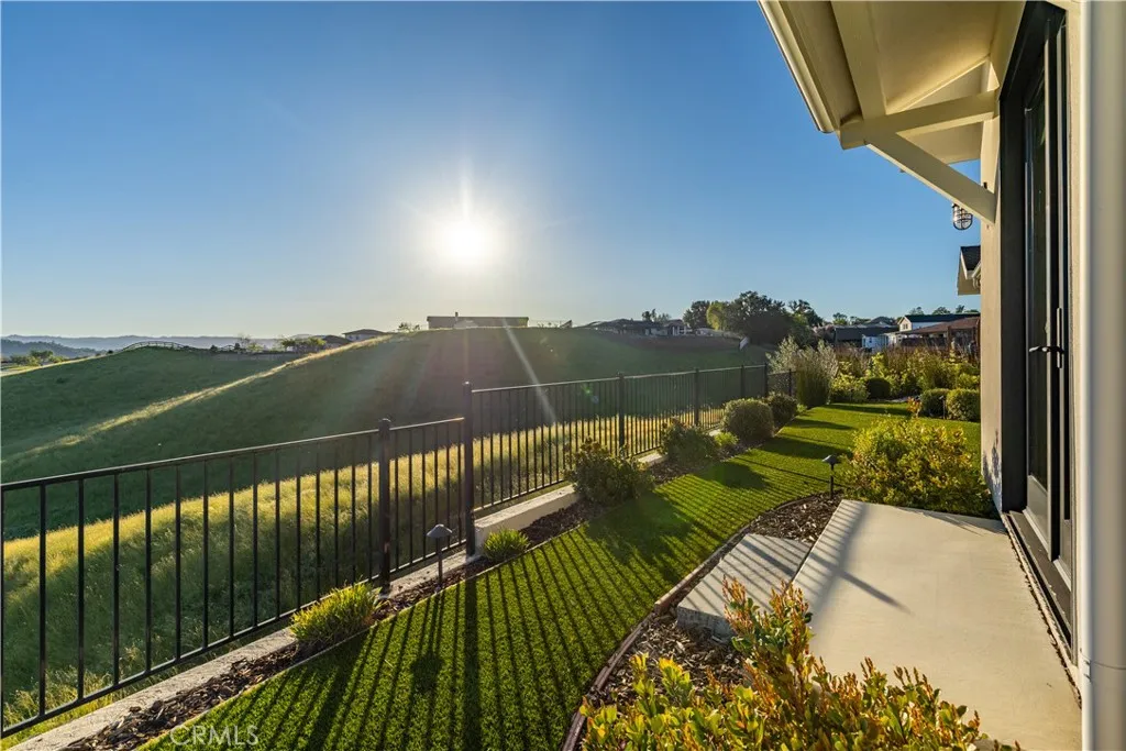 Soaring two-story cathedral ceilings with artistic beams, panoramic coastal mountain views, and protected open space privacy define this exceptional custom residence inside the gates of Heritage Ranch at Lake Nacimiento. Designed to capture natural light and surrounding landscapes, the home blends modern architecture, craftsmanship, and relaxed lake living. Inside, the open great room floor plan seamlessly connects the living, dining, and kitchen spaces, creating an ideal setting for entertaining while framing the surrounding hills through expansive glass doors. The chefs kitchen offers both style and performance with a commercial-grade six-burner Wolf range, gorgeous white Corian countertops, a generous center island, and custom soft-close cabinetry. Built-in cabinetry throughout home and thoughtful storage add both elegance and functionality, including a beautifully integrated serving and display area within the main living space. The spacious primary suite serves as a private retreat featuring a dressing room with extensive cabinetry and a spa-inspired bathroom designed for relaxation. Three additional bedrooms, one being an ensuite, provide flexibility for guests, family, or office space. A unique courtyard-oriented design allows the main living areas and bedrooms to open toward a private outdoor entertaining space, creating seamless indoor-outdoor living. Positioned with protected open space along both the side and rear of the home, the property enjoys exceptional privacy along with sweeping coastal mountain views and peaceful meadow landscapes where deer and native wi