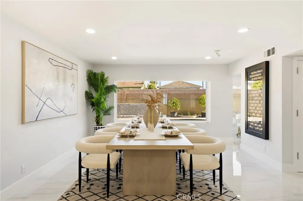 Dont miss this beautifully upgraded contemporary home offering nearly 2,800 sq ft of living space near Mile Square Park, Little Saigon, and premier shopping and dining. This spacious 4-bedroom, 4.5-bath single-family residence has been extensively renovated with major improvements including new plumbing, updated electrical, a new A/C system, newer roof, upgraded windows and electric blinds. Step through the formal entry with elegant marble flooring into a bright and inviting living and dining area featuring large windows that overlook the backyard and pool, creating a perfect space for entertaining. The spacious kitchen features elegant white stone countertops, a built-in cooktop, and double ovens, ideal for anyone who appreciates a gourmet kitchen. An office nook is conveniently located near the family room, which includes a beautiful marble fireplace. Upstairs, highlighted by a glass and chrome banister staircase, youll find generously sized bedrooms with full baths. The bright primary suite features a walk-in organized closet and an adjoining bathroom with a walk-in shower and dual vanity. Secondary bedrooms share a Jack-and-Jill bathroom, while another bedroom includes a private retreat perfect for a playroom, office, or hobby area. The interior showcases marble flooring throughout and recessed lighting with dimmer controls, creating a bright and elegant living environment. Step outside to enjoy the refurbished swimming pool, perfect for entertaining and relaxing. The covered patio features recessed lighting and is surrounded by lush landscaping. Additional highlights i