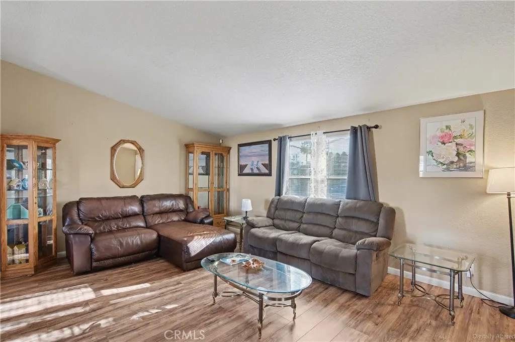 Seller credit $5,000 towards closing costs!! This manufactured home is in a 55+ community that is well-kept. However, there is no HOA fee associated with this property. The home is established on a permanent foundation, as are the surrounding homes. This home sits on a large lot and is protected by a new electronic gate. The front yard is filled in with rocks, removing the need for any landscaping work! Several palm trees guide you up the steps to the front door. Inside, you will find a spacious open floor plan on 1 story. The inside is well-maintained and demonstrates a clear pride of ownership. The home has 3 bedrooms and 2 bathrooms. In the backyard is an ADU that is in good condition. The square footage listed does not include the ADU. The plans for the ADU will be included in the sale.